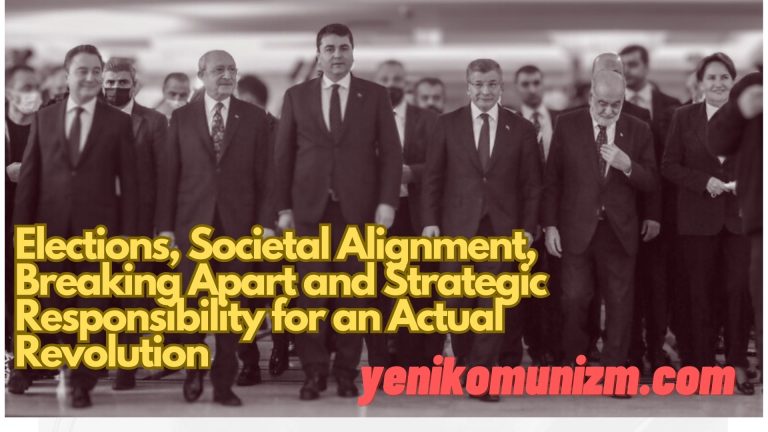 - We showed how we are approaching the elections and that elections cannot solve any basic problems of the masses. Therewith we have to add the fact that the only important part of the elections is that it shows which ruling class faction will run the country and that the “democratic passage of power” can happen. This is why the perspectives like “the elections would not happen” or “Erdogan will not go through elections” are not true. Yes, Erdogan will do everything in his power not to leave, and yes, he is using, and he will be using every apparatus of the state for this goal. The absolute way of thinking such as “Erdogan will not go” is feeding from the same way of thinking like seeing a “one-man regime” and this way of thinking does not understand the circumstances and the necessities of the ruling classes that they are passing through and both of those thoughts are idealistic. If Erdogan did not have the necessities that we have expressed here, he would not go for the elections. It should not be forgotten that during the Nazi reign there were nineteen assassination attempts on Hitler and the majority of those attempts were made by the German ruling class cliques. As an abstract, yes, with the elections it is not possible to solve the fundamental problems of the masses and no, even if there are some “mise-en-scene” sides of the elections, they are not a “big mise-en-scene;” they can, and they are embodying the deep frictions and projects between the ruling classes.
