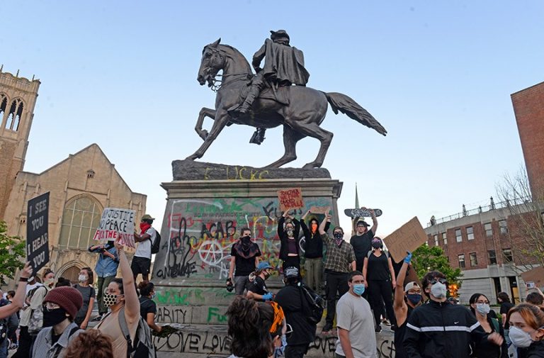 George Floyd’un korkunç bir şekilde katledilmesi ile birlikte ateşlenen ayaklanmalarla bağlantılı olan önemli eğilimlerden bir tanesi de, birkaç tarihsel figür ve olayı onurlandıran heykel ve anıtların hedef alınmasıydı. Bu durum, Konfederasyon askerleri ve siyasi liderleri için dikilmiş heykellere ve anıtlara karşı bazıları başarılı olan, bazıları ise olmayan yıkma (ya da ortadan kaldırma) girişimleriyle başladı ki, bunlar tamamen meşru ve haklıdır! Bu Konfederasyon heykellerinin ve anıtlarının ortadan kaldırılması açık bir şekilde meşru ve haklı olmasının yanı sıra, esasen bu durum bir hayli gecikmeli olmuştur! Önceden yazdığım gibi, Trump (ve diğerlerinin) bu beyaz üstünlükçülerinin heykel ve anıtlarının yıkılmasına karşı “atıp tutmaları”, “bu heykelleri bu ülkenin ‘yüce tarihi ve mirası’ diye savunan Beyaz Saray ve beyazlar (ve bazı siyahi piyonlar) tarafından süregelen beyaz üstünlenmeciliğinin zehirli varlığının en bariz örneklerinden biridir!”((Bkz: Bob Avakian, “Güzel Bir Ayaklanma, Doğru ve Yanlış, Metot ve Prensipler Üzerine” – https://yenikomunizm.com/guzel-bir-ayaklanma-dogru-ve-yanlis-metot-ve-prensipler-uzerine/))